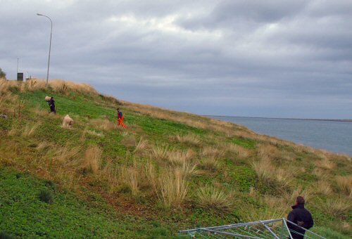 21. september Veikar varnir ? Norðanáttin skall á okkur eins og aðra landsmenn, samkvæmt "spánni" (aldrei þessu vant) Á flóðinu í morgun gekk sjór og meðfylgjandi á land við enda Túngötunnar, lítið magn og engar skemmdir, en það sást þó. Sveinn Þorsteinsson, fréttaritari minn vaknaði fyrr en ég í morgun og tók þessa mynd.