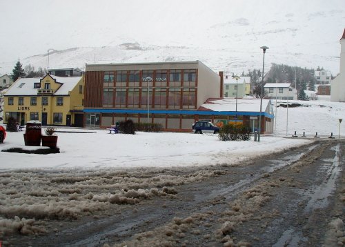 Hús "Kaupfélagsins" þar sem starfsemi föndurvinnu, fatlaðra og þroskaheftra fer fram. En sú starfsemi hefur verið, í amk. 10 ár. Þessi mynd er tekin í morgun klukkan 10:30