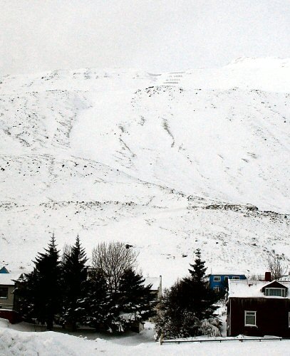 vera þar mikill snjór, frekar en annarsstaðar í fjallinu. En aldrei er of varlega farið í þessum efnum. Fólk fékk að fara heim til sín að nýju í morgun, þeim sem sagt var að yfirgefa hús sín í gærkveldi. Ég hefi fengið nokkra "pósta" í gærkveldi og í morgun þar sem ég hefi verið beðinn að sýna "hinn mikla snjó" sem lesa má út úr fréttum fjölmiðla, að sé á Siglufirði. Ég leitaði af þessum snjó, en varð lítils var, miðað við þær væntingar