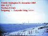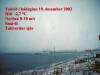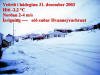 Vešriš į Sigló ķ desember 2003 Hitamęlirinn er stašsettur ķ tveggja metra hęš, ķ skugga frį sólu į hśsinu Hvanneyrarbraut 80. Vindhraši er įętlašur, m.v. sjįlfvirkan vindmęlir ķ botni fjaršarins. Myndin hverju sinni er tekin til sušurs, frį svölum Hvanneyrarbrautar 80. (26462)