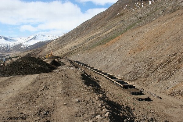 Litið til suðurs eftir garðinum. Til hægri er verið að leggja styrktarkant, en þarna á garðurinn eftir að hækka talsvert