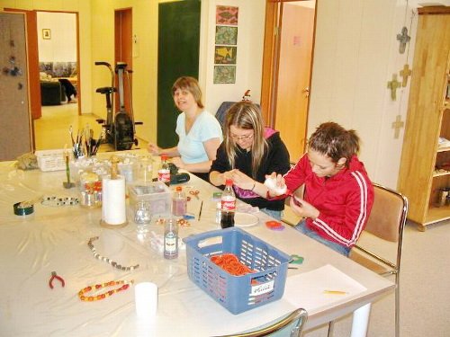 Sigga og Una heimsóttu Iðjuna og leikskólann – í Iðjunni voru þær önnum kafnar við að búa til fallega hluti ásamt fólkinu þar og í leikskólanum að hugsa um börnin