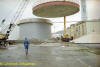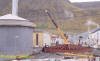 29-02-0266-13 Leki kom að svartolíutank hjá SR og samhliða því að skipt var um botn í tankanum, var einnig skipt um þak, sem var orðið lélaegt. Þarna er verið að hífa þakið af