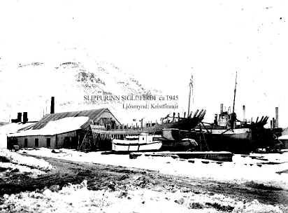 Siglufjarðarhöfn um 1942 Anleggið lengst til hægri. ljósm.
