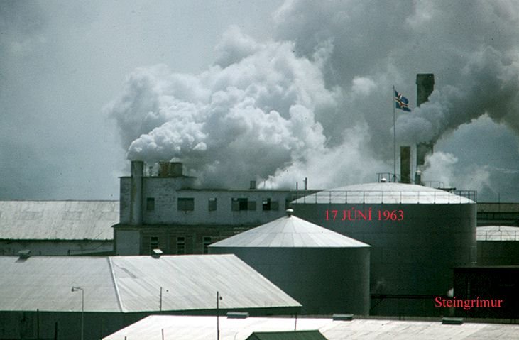 júní 1965. Bræðsla síldar á fullu hjá SR á Siglufirði. Á þessum