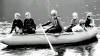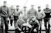 07-00-0300-24 Skipverjar á Hafliða SI 2: Gústaf Vilhelmsson, Jóhann Matthíasson, Jón Sæmundsson, Ókunnur, Helgi Sigurðsson, Sveinn Björnsson, Hans Þorvaldsson og Ókunnur og Líður Ægisson með hringinn. Ljósmyndari ókunnur.