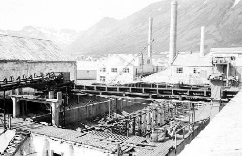 Gömlu síldarþrær. SRN og SR30. Verið er að breyta þeim í eina stóra loðnuþró, sem taka mun um 4-5 þúsund lestir