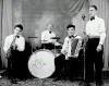 21-00-0144-03 Hljómsveit Bjarka Árnasonar (?) en hana skipuðu auk Bjarka til vinstri, Egill Steingrímsson matsveinn og Hilmar Jónsson smiður.