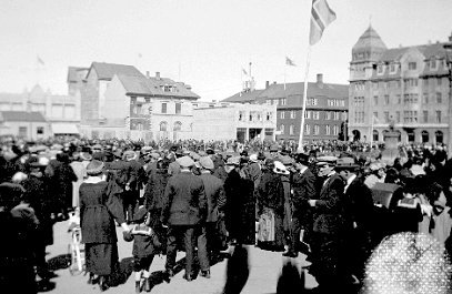 27-00-0107-02 Ofangreind mynd er greinilega tekin á Austurvelli í Reykjavík. Eins og sjá má er ekki búiđ ađ reisa nein hús á grunnum ţeirra húsa sem brunnu í brunanum mikla. Byrjađ er á "London" ţar sem nú er Cafe Paris. Ađeins er búiđ ađ byggja tvćr hćđir af ţví húsi. Lengst til hćgri er apótekiđ og síđar pósthúsiđ. Myndin er tekin frá Alţingishúsinu. Heimild: Jóhannes B. Ingason. Ljósmynd: um 1930 Gísli Halldórsson |