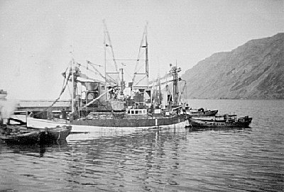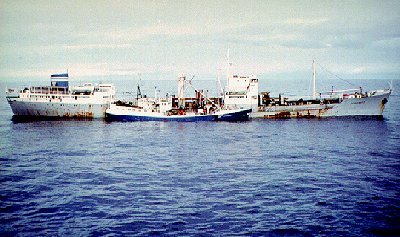 03-00-0045-06 Norðangarður, leiguskip SR að lesta síld úr ókunnum bát á Jan Majen miðum.á |