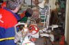 2003-03-21-01 Mótið látið snúast í rennibekk - og hitað í kjörhita (bræðslumark hvítmálms) Óskar Berg Elefsen