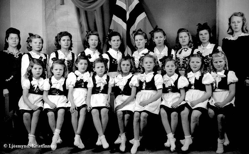 Þekkt nöfn á myndinni: Gréta Friðriksdóttir, Guðný Guðjónsdóttir, Erla Finnsdóttir, Hulda Hannesdóttir, Sigríður Angantýsdóttir, Ásta Bjarnadóttir, Helena Guðlaugsdóttir, Boodil Jull, Steinunn Gunnlaugsdóttir, Guðbjörg Friðriksdóttir, Hrafnhildur Stefánsdóttir, Elfa Hólm Þorleifsdóttir, Sonja Guðlaugsdóttir. |