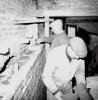 08-62-0048-15 Unnið við múrverk inni í Þurkaraofni SR46 árið 1962. Á myndinni eru Sigurður Magnússon múrarameistari og Þorleifur Hólm múrari.