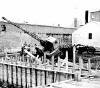 08-62-0079-14. Þarna er unnið að "landnámi" á lóð SR norðan við þrær SR46 árið 1962. Á myndinni er krani að hífa gömul suðukör sem notuð voru sem "mót" utan um frárennslis stokk.