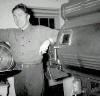 18-00-0245-01 Sýningaklefi Nýja Bíó; Kristinn Guðmundsson sýningarstjóri. um 1950, ljósmynd Valborg
