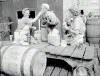 21-00-0020-02 Tunnuverksmiðjan; Ókunnur, Ástvaldur Einarsson verkstjóri og Halldór þorvaldsson beykir, Tunnuhitarar í baksýn