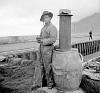 22-00-0043-02 Guðjón Magnússon vélsmiður hellir út málm grýtu í mót , hjá Vélaverkstæði SR