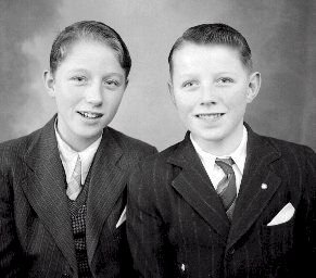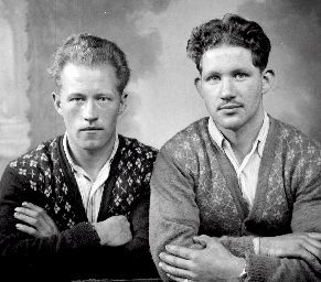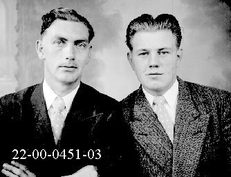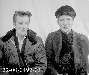22-00-0342-02 Brćđurnir Guđmundur og Pétur Péturssynir, Guđmundur var alinn upp hjá Soffíu Grímsdóttur, ţau áttu heima í litlu húsi viđ Hvanneyrarbraut ofan viđ íţróttavöllinn Soffía var orđin ekkja ţegar ég man eftir en Ásta dóttir hennar bjó hjá henni. Pétur (loftskeytamađur) var alinn upp hjá Guđbjörgu ljósmóđur og Árni í Shell. Ţeir voru yfirleitt kallađir Mummi Soffíu og Pitti Guđbjargar.