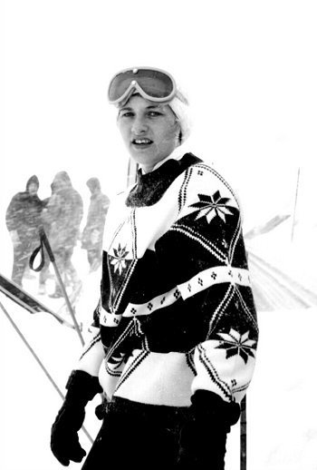 Vilbergssyni í stórsvigi, en hann varið þrefaldur Íslandsmeistari einsog Kristín og í sömu .greinum. - Neðri myndin er af skæðasta