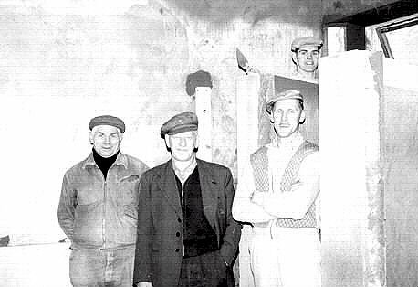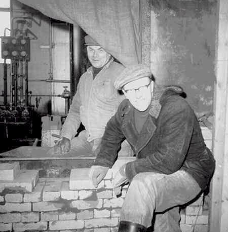 Unnið við múrverk inni í þurkara ofni SR46 árið 1962. Á myndinni