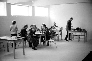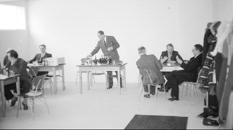 framleiðslunni. Kristján Sturlaugsson kennari. situr við borðið,