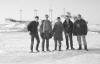 11-68-0033-26 Nokkrir skipvejar fengua að sletta úr "klaufunum" á sléttum ísnum stutt frá "Óðinsboða" á Húnaflóa, en Haförninn þurfti að bíða eftir togaranum Hafliða sem var á sömu leið og við, en gekk ferðin ekki eins vel og Haferninum, en Haförninn hafði það fram yfir togarann að hafa bógskrúfu, sem hann notaði til að mynda rauf á milli stórra jaka.