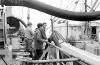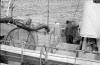 11-68-0109-10 Stút frá snigli til tanka, komið fyrir um borð í Haferninum. Sigurður Jónsson háseti, Steindór Ólafsson háseti og Ægir Björnsson bátsmaður