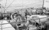11-68-0113-27 Þarna eru skipverjar Hafarnarins að undirbúa söltun á síld, sem hífuð var um borð, þarna eru Sigurður Jónsson og Guðmundur Björnsson hásetar að moka í tunnu, en skipverjar veiðskipanna gáfu oft skipverjum Hafarnarins nokkrar tunnur af farmi sínum, sprikklandi síld sem söltuð var um borð og seld síðan Sigló Síld á Siglufirði