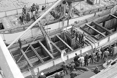 Þarna er verið að dæla úr síldarflutningaskipinu m/s Westberg