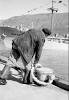 10-66-0209-17 Hér smegir Gísli Hallgrímsson, starfsmaður SR springnum á pollann, fyrsta snerting Hafarnarins við ný hafnarmannvirki SR
