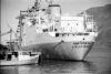 10-66-0210-23 Haförninn kemur inn að bryggju SR í fyrsta sinn, lestaður síld af Austfjarðarmiðum. Dýpkunarskipið Grettir er enn að störfum, rétt nýbúinn að gera rennu svo Haförninn kæmist að bryggju.