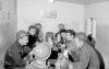 10-66-0262-01 Inni í kaffistofu, en þarna er "hin" vaktin, þarna þekki ég aðeins Gestur Halldórson tækjamaður lengst til vinstri og Birgir Björnsson bifvélavirkja og Oluf Nicalsen sprengisérfræðing (Færeyingur)