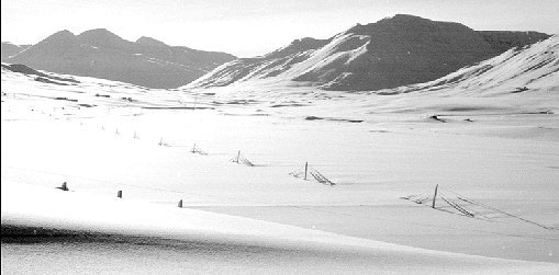 12-74-0016-43 Taktu eftir húslyklinum sem "hangir" utan á ísklumnum. Lyklillinn var settur þarna til samanburðar á sverleika á ísingarinnar,(um 25 sm.) sem hlóðst utan um háspennuvírana, sem ýmist slitnuðu eða sliguðu línurnar niður sem og braut staura í tugatali.