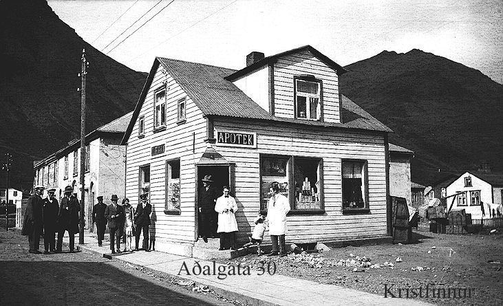 Apótekið Siglufirði Aðalgötu 30, 1930 (ca) Nýja Bíó í bak. ljósm.