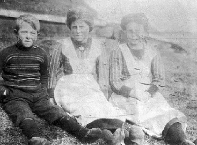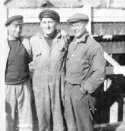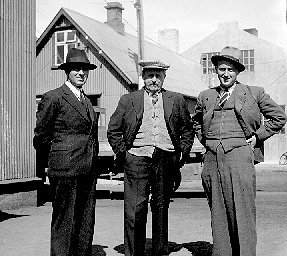 Fyrir framan skrifstofu SR á Sigló Ókunnir til vinstri en Gísli