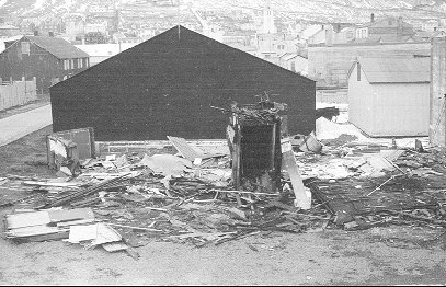 Niðurrif "Hvíta Hússins" eftir bruna. Ljósmynd Hallgrímur Hafliðason |