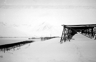 Fiskhjallar á ströndinni norðan Siglufjarðar. Ljósmynd Hallgrímur Hafliðason |