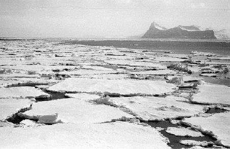 frá, var víðáttumikil ísspöng, sem náði allt út í hafsauga, svo langt