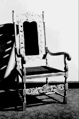 Þessi fallegi stóll og annar eins, eru vandaðir viðhafnarstólar sem Systrafélag Sjúkrahússins gaf kirkjunni hér um jólin. Stólarnir eru ætlaðir til sérstakra viðhafna eins og td. Við giftingar.