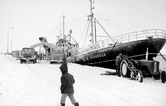 Þess má geta, að flugvél frá Vængjum gat ekki lent hér í gær vegna dimmviðris, sem var undanfari þessa veðurs. Sveimaði vélin lengi hér yfir en gat ekki lent og fór hún því á Sauðárkrók. Farþegar héðan, sem ætluðu að ná vélinni þar, urðu að ganga 300--400 m leið yfir ófæru á leiðinni, en þar biðu bílar. Skotfæri er beggja vegna við þennan kafla, sem er í Skriðunum. Farþegarnir misstu þó af vélinni og dúsa á Sauðárkróki, svo og þeir farþegar, sem hingað ætluðu. Þykir hálf hart, að þessi litli kafli á veginum teppi umferð þar sem ekki tæki meira en einn til tvo tíma að ryðja hann.