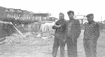 Gróska er í íbúðabyggingum í Siglufirði, sem lágu niðri um árabil. Um 20 íbúðir munu nú í byggingu, þar af 8 leiguíbúðir í fjórum tvíbýlishúsum, hitt einbýlishús. Húseiningar hf. (verksmiðjuframleidd hús í einingum) eiga verulegan hlut að máli. Myndin sýnir Fossvegssvæðið, þar sem flest hinna nýju húsa eru í byggingu. Á myndinni eru: Þórarinn Vilbergsson, byggingameistari ( Berg hf.), sem annast byggingu flestra húsanna. Þorsteinn Jóhannesson, bæjarverkfræðingur. Einar Hallgrímsson, starfsmaður Siglufjarðarkaupstaðar Ljósmynd: Þorgerður [Þessi ljósmynd er skönnuð frá Morgunblaðinu og því ekki eins góð og eftir filmu]