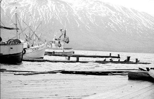 Mikil flóðhæð var á Siglufirði sl. mánudagsmorgun og lá við að flestar bryggjur bæjarins færu á kaf. Sum staðar flæddi sjór á land eins og td. við hraðfrystihúsið Ísafold.