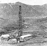 Borað eftir heitu vatni i Skútudal, sem er tæpa 5 km fyrir innan Siglu-fjarðarkaupstað, sem sést í baksýn.