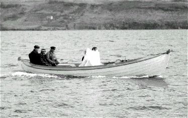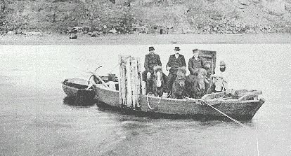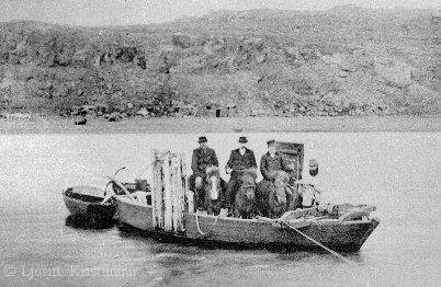 stendur við vinduna. Jón er að ferja þá yfir vesturós Héraðsvatna á