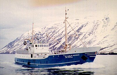 Danmörku 1934 og hét þá SÆHRÍMNIR, SI-80 og fór þaðan til Þingeyrar og