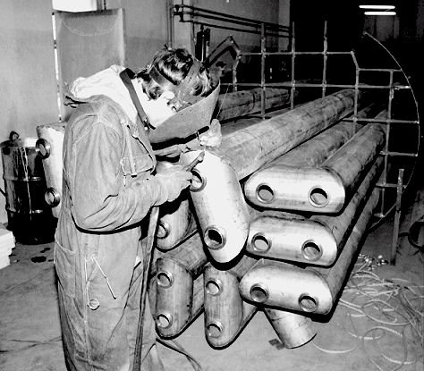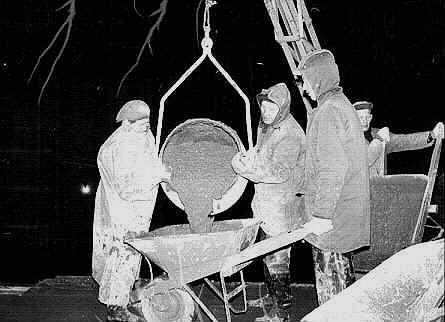 SR46 árið 1962. Á myndinni er krani að hífa gömul suðukör sem