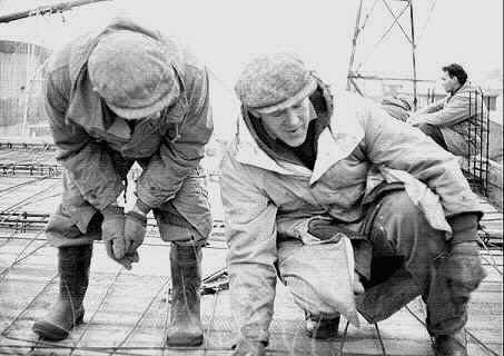 Unnið við að steypa þakplötu Lagmetisverksmiðjunar"Sigló"