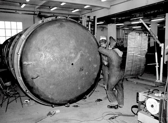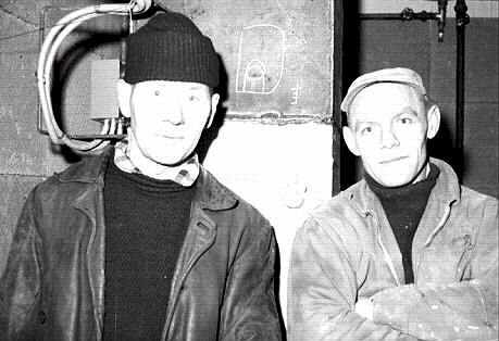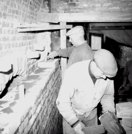 Unnið við múrverk inni í þurkara ofni SR46 árið 1962. Á myndinni