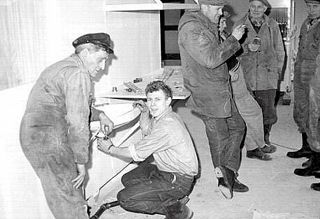 þakplötu á "Sigló" nú Pólar árið 1961. Á myndinni eru