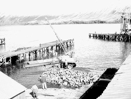 (1962) löndunarbryggju SR46, en ákafur stýrimaður hafði gefið